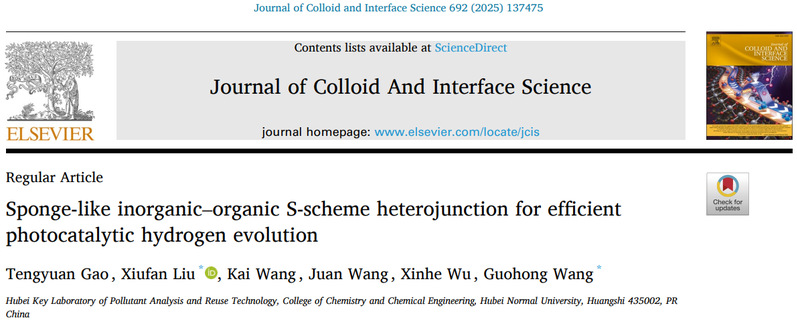 该成果于2025年6月发表于中科院SCI大类一区Journal of Colloid And Interface Science(IF:9.7),2023级硕士研究生高藤榞为论文第一作者,王国宏教授和刘修凡副教授为论文通讯作者,湖北师范大学为论文唯一通讯单位。