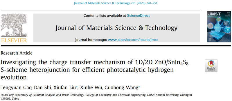 [成果20] 王国宏/刘修凡:1D/2D ZnO/SnIn4S8 S型异质结高效光催化析氢的电荷转移机制