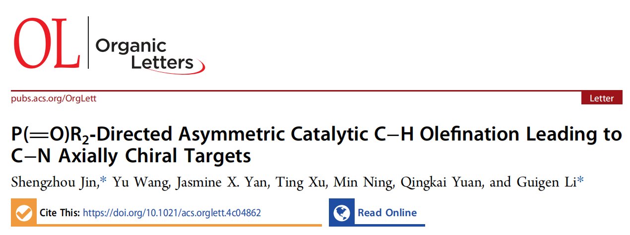 该成果于2025年3月发表于中科院SCI大类一区、自然指数期刊Organic Letters(IF:5.0),金胜周博士为论文第一作者兼通讯作者,湖北师范大学为第一通讯单位,美国德州理工大学/南京大学李桂根教授为论文共同通讯作者。