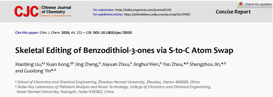 该成果于2025年11月发表于中科院SCI大类一区Chinese Journal of Chemistry(IF:5.5),周口师范学院刘小兵副教授、2023级硕士研究生孔暄为论文共同第一作者,湖北师范大学周耀副教授、金胜周博士和殷国栋教授为论文共同通讯作者,湖北师范大学为论文第二通讯单位。