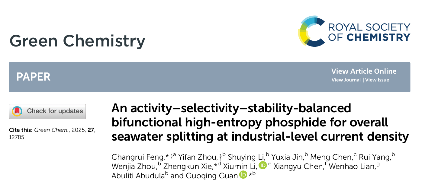 该成果于2025年9月发表于中科院SCI大类一区Green Chemistry(IF:9.2),冯长瑞博士为论文第一作者兼通讯作者,郑州大学谢正坤副教授、日本弘前大学官国清教授为论文共同通讯作者,日本弘前大学周奕帆博士为共同第一作者,湖北师范大学为论文第一通讯单位。