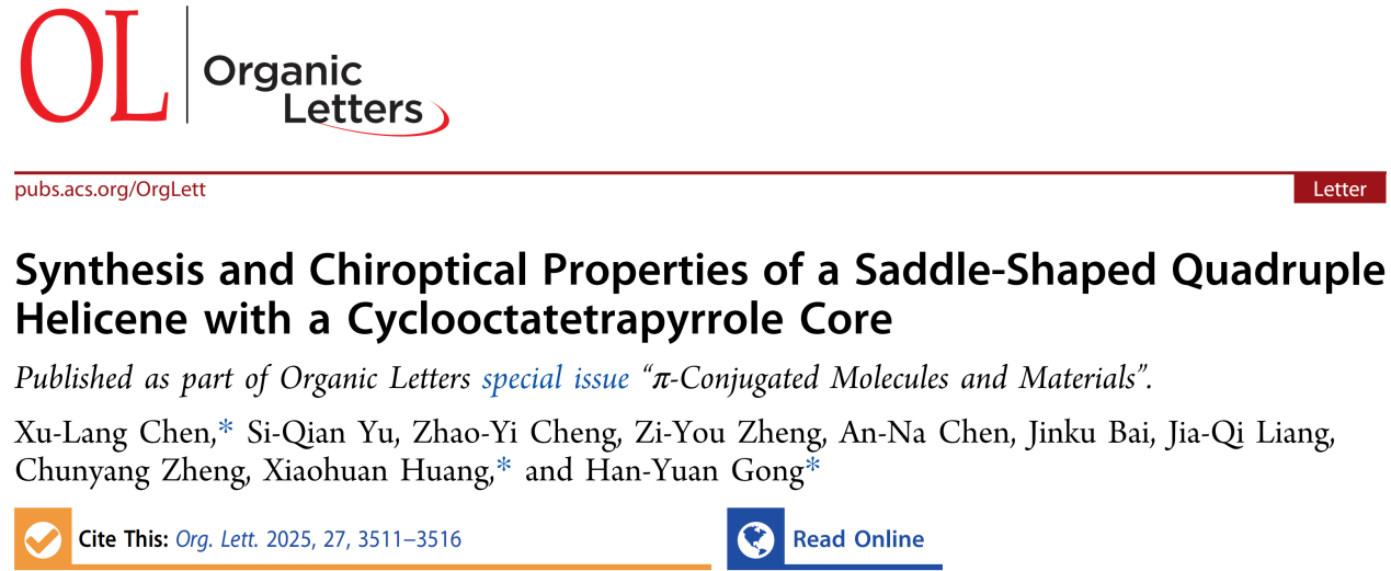 [成果9] 陈绪朗:具有环辛四吡咯核心的鞍形四螺旋烯的合成及其手性光学性质