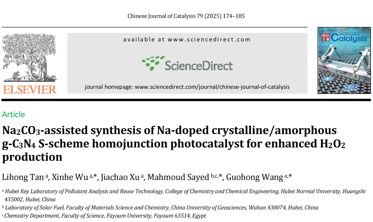 [成果23] 吴新鹤:Na2CO3辅助合成钠掺杂结晶/非晶g-C3N4 S型同质结光催化剂用于增强H2O2合成