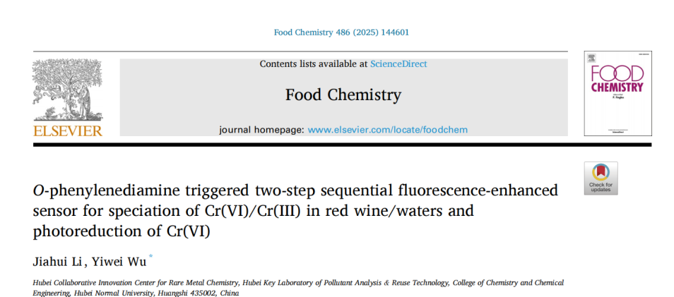 该成果于2025年9月发表于中科院SCI大类一区Food Chemistry(IF:9.8),2022级硕士研究生李佳卉为论文第一作者,吴一微教授为论文通讯作者,湖北师范大学为论文唯一通讯单位。