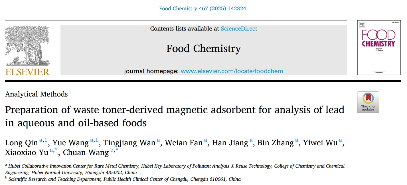 [成果1] 余筱筱:废碳粉衍生磁性吸附剂用于分析水基和油基食品中的铅