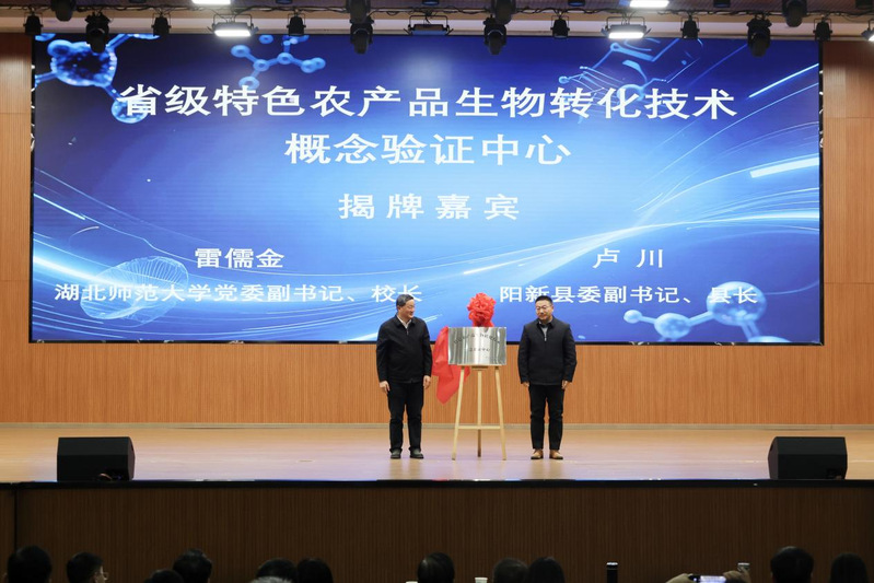 12月16日,湖北省“双百”科技赋能·汇智阳新冲刺百强成果展示会在阳新县隆重举行。活动由阳新县政府主办,湖北师范大学与阳新共建的阳新县现代农业产业技术研究院承办。校党委副书记、校长雷儒金,校党委常委、纪委书记陆咏梅,省科技厅副厅长夏松,黄石市科技局党组书记、局长严吉庆,阳新县委副书记、县长卢川,副县长石顺发等领导出席活动。我校相关职能部门负责人,中国科学院武汉病毒研究所的领导专家,阳新县直和各镇(区)相关负责人,以及200余名企业家代表共同参会。作为阳新重要战略合作伙伴,我校以科技创新为纽带深度参与,为其冲刺全国百强县提供有力支持。