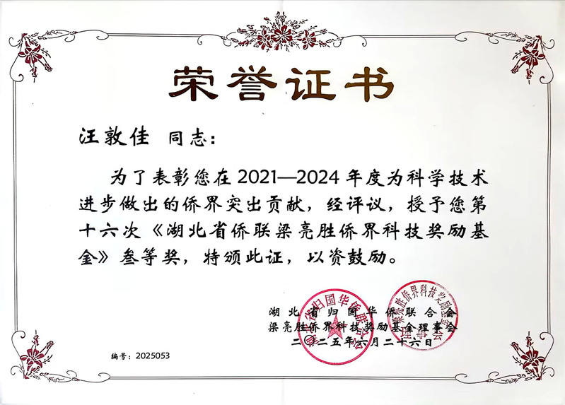 湖北省侨联梁亮胜侨界科技奖励基金三等奖-汪敦佳