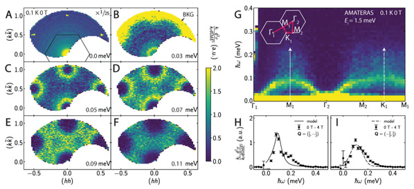 成果一:长期以来,寻找真实的量子自旋液体材料是凝聚态物理领域的一项重要任务,而自旋激发连续谱被视为确认量子自旋液体的重要证据。本研究通过对三角晶格稀土氧化物CeMgAl11O19开展极低温热力学和非弹性中子散射实验,发现最低温度降至100 mK时,系统仍然没有建立长程磁序,是较为理想的稀土基量子自旋液体候选材料。通过对极化态下的自旋波激发谱进行分析,获取了系统的自旋哈密顿量,确定其位于三角晶格自旋1/2 XXZ模型中具有高度简并的精确可解点附近。尤为重要的是,研究还揭示了微弱的结构无序阻碍系统在低温下选择唯一的磁有序基态,零场下测得的自旋激发连续谱并非来自分数化的自旋子激发,而是源于准简并基态中多重局域自旋波的叠加。这一发现不仅为自旋激发连续谱的起源提供了一种基于经典物理解释的全新机制,也为在实验上区分量子自旋液体和经典自旋态提供了关键信息。该研究成果以“Spin excitation continuum from degenerate states in the mixed ferro-antiferromagnetic exchange system CeMgAl11O19”为题,2026年3月发表于Science Advances [Sci. Adv. 12, eaed7778 (2026)]。我校马祯副教授、美国加州大学圣巴巴分校Leon Balents教授和莱斯大学戴鹏程教授为共同通讯作者。